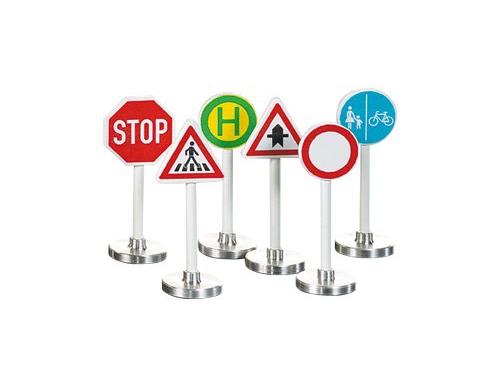 Fémből és műanyagból készült közlekedési táblák, melyek beleillenek a Siku világába.
