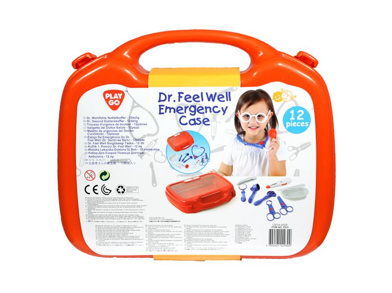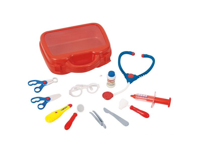 Játszatok orvososat a Doktor táska- 12 darabos készlettel! A jól felszerelt orvosi táska tartalmaz minden olyan eszközt, amivel a képzeletbeli pácienst meg lehet gyógyítani! Tedd fel a szemüveget, hogy alaposan meg tudd vizsgálni a kis beteget, majd akaszd a nyakadba a sztetoszkópot! Ha esetleg megfázott, mérd meg a lázát, vagy ha csak egy szálka ment az ujjába vedd ki a csipesszel! Csak a képzeleted szabhat határt, mert az orvosi készlet adott. A játék végére biztos, hogy az összes kis beteg egészségesen távozik majd rendelődből! Jó szórakozást! Csomagolás méretei: 30 x 8 x 25 cm