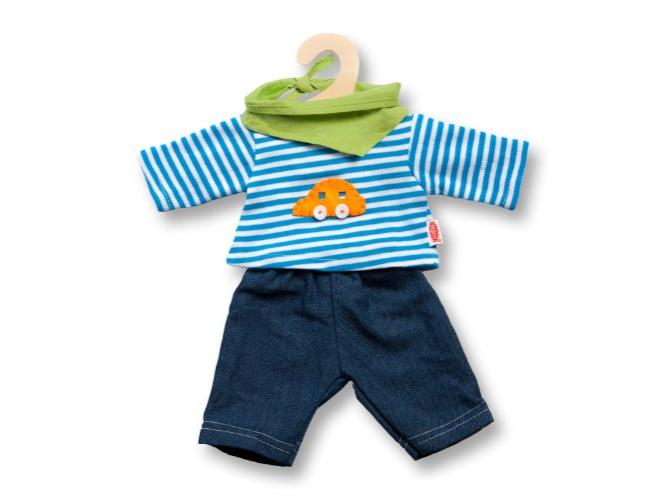Játékbaba ruhaszett: farmer nadrág csíkos inggel és egy sállal - 28-35 cm babához