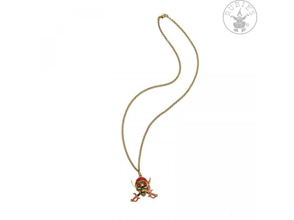 A Halálfejes nyaklánc 35 cm-es arany színben leírása: Kb. 35 cm-es aranyszínű lánc, ugyanolyan színű halálfejes medállal, mely pirossal díszített. A termék ezt tartalmazza, a képen látható egyéb kiegészítőket nem.