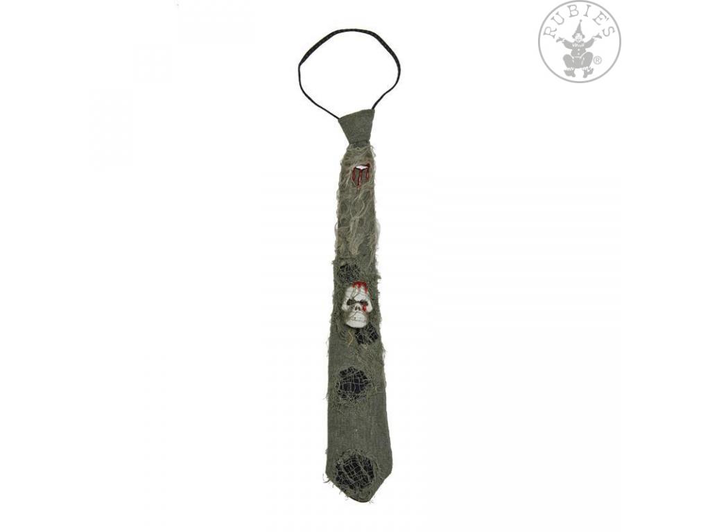 A Halálfejes nyakkendő zöld zöld színben leírása: Fekete nyakkendő, zöldesszürke pókhálószerű anyaggal bevonva, halálfej mintával. Többféle horror vagy halloweenes jelmezhez illő jelmezkiegészítő