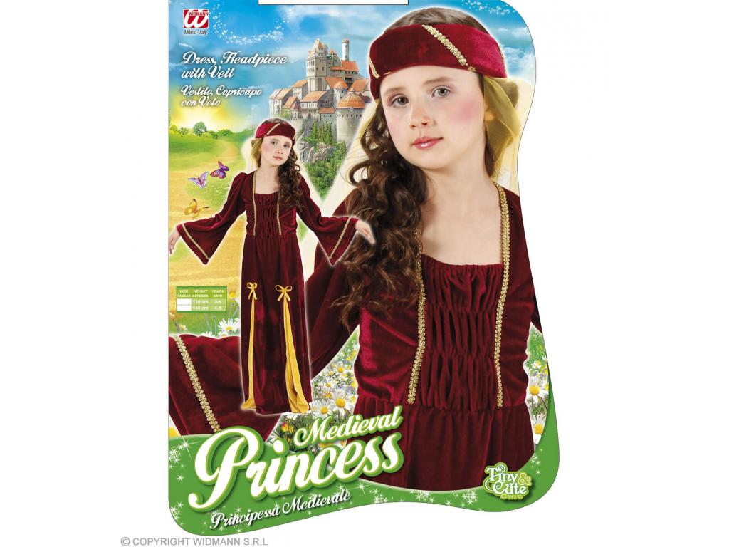 Hercegnő jelmez fejpánttal és hozzá kapcsolódó fátyollal. Középkori hercegnő jelmez kislányoknak. Az egyrészes hosszú bordó ruhában igazi mesebeli hercegnő lehetsz.