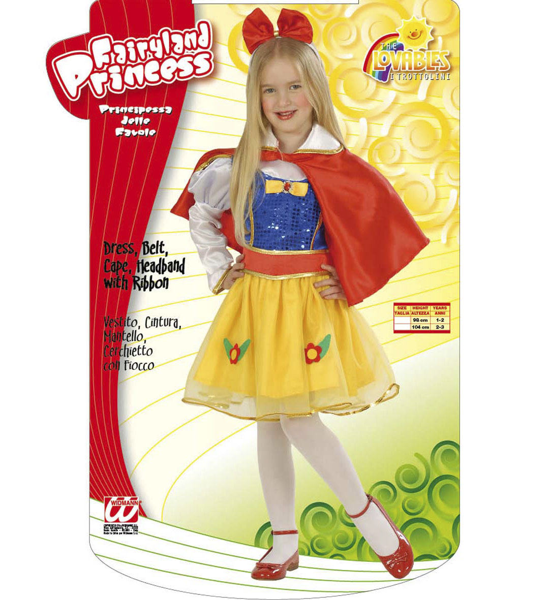 A képen illusztrációként megjelenhetnek olyan kiegészítők, mint például harisnya, ékszer, cipo, paróka, kesztyű, kardok, kemény kalapok, varázspálca, seprű, szakáll, bajusz, műanyag korona, esernyő, vasvilla, legyező, stb, ezeket az ár nem tartalmazza.
