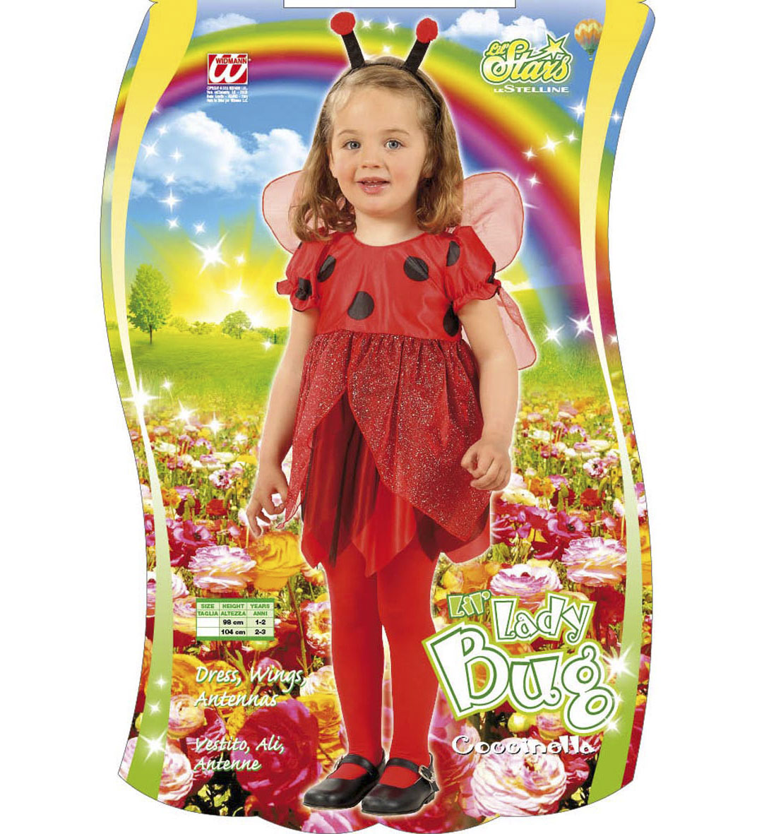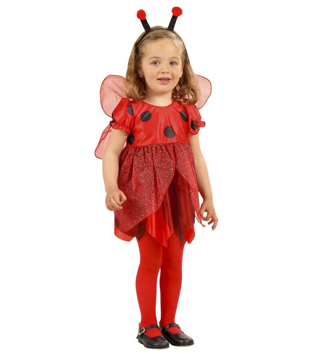 Katica ruha szárnyakkal és fejpánttal. Légy aranyos katicabogár a jelmezbálban! Fodros katicás mintás piros ruha, csillámos szoknyarésszel, hátul tépőzáras szárnyakkal és katicás fejpánttal. Más kiegészítőt (pl. harisnya, cipő) nem tartalmaz!