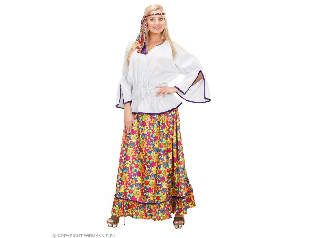 Részei: szoknya, blúz, fejkötő. Ezzel a jelmezzel visszarepülsz a 60-as évekbe, és hippi nővé válhatsz! Hosszú, virágmintás szoknya, fehér blúz és fejkötő a szett tartalma.