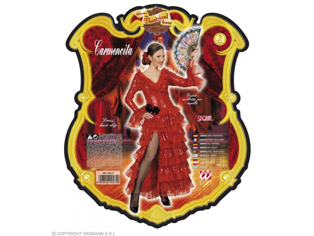 Részei: flitteres piros ruha kivágással, és piros hajcsat dísz. Carmen női jelmez. Gyönyörű spanyol táncosnőként biztos sikert aratsz a jelmezbálban. Legyező, harisnya nem részei a szettnek.