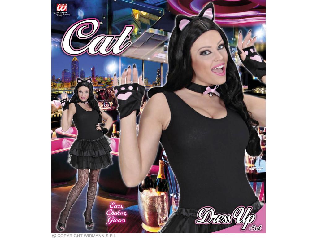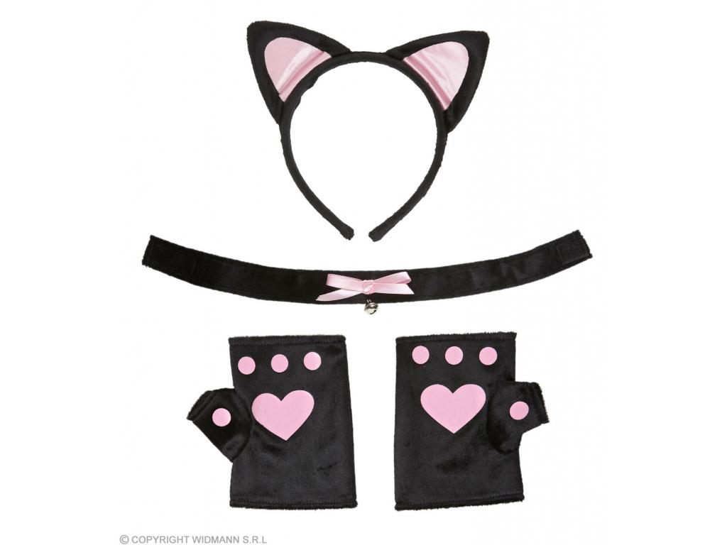 Macska jelmezkiegészítő: fül, nyakék, kesztyű. Szín: fekete, rózsaszín. Csak kiegészítő, ruhát nem tartalmaz.