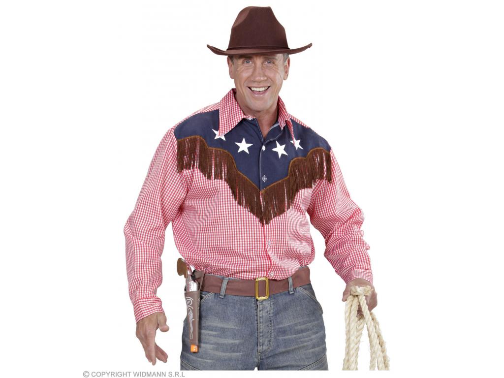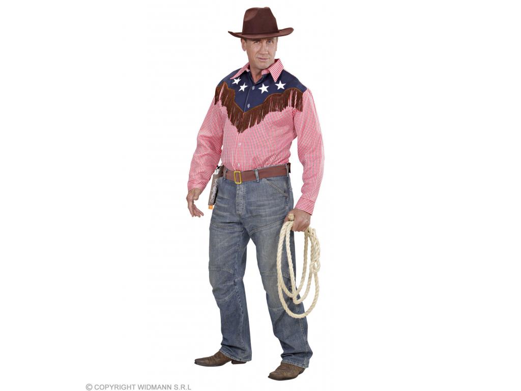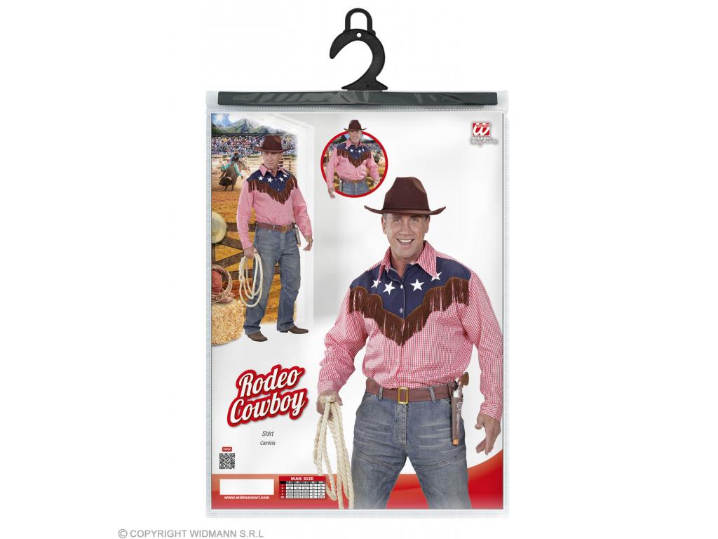 Jelmezkiegészítő cowboy jelmezekhez: rodeós/cowboy western ing. Piros mintás, barna-kék-fehér dekorációval. 100% poliészter. Ha a cowboy vagy a rodeós hivatást választod a jelmezbál idejére, akkor ezzel a western rodeós inggel nagyszerűen ki tudod egészíteni a jelmezed. Csak jelmezkiegészítő, tehát nadrágot, övet, fegyvert, lasszót vagy kalapot nem tartalmaz! Ezeket keresd áruházunkban a jelmezkiegészítők között.