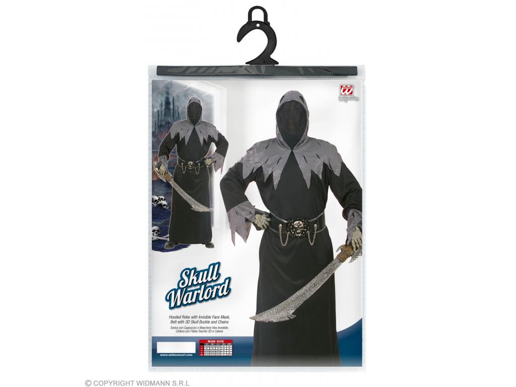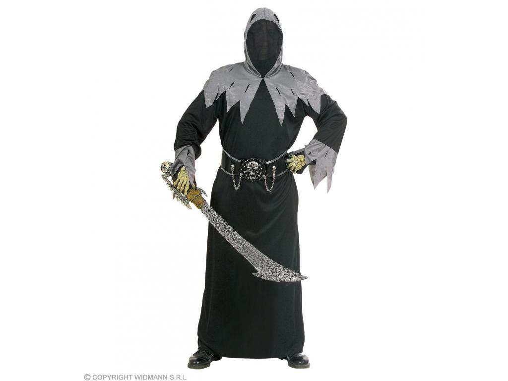 Felnőtt jelmez szett, részei: hosszú, fekete tunika kapucnival, és az arcunkat elrejtő maszkkal, deréköv koponyával és láncokkal díszítve. Fegyver nem része a szettnek, azt keressék áruházunkban a kiegészítők között. Titokzatos és sejtelmesen rémisztő jelmez, mely bármelyik halloween vagy jelmezes partin kitűnően megállja a helyét.