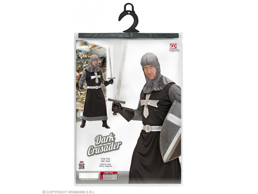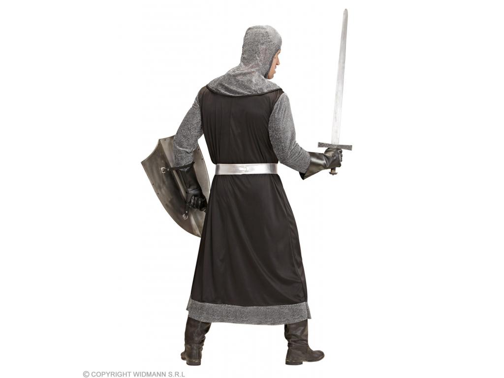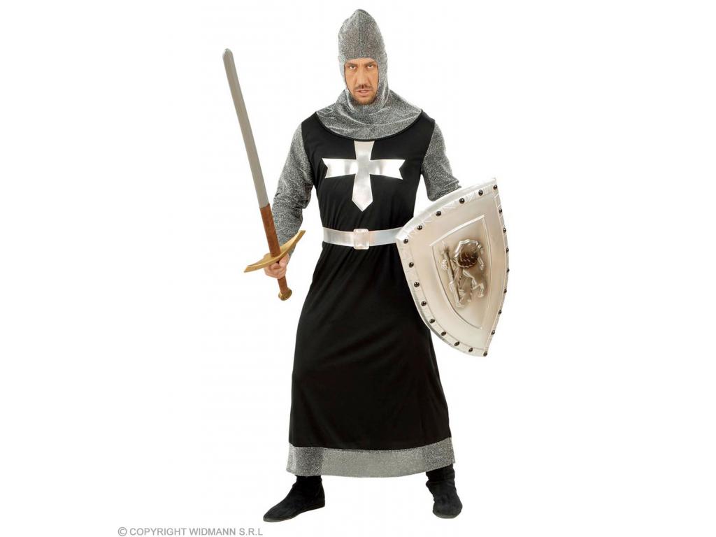 Felnőtt jelmez szett, részei: hosszú fekete és fémes hatású ezüst résszel díszített tunika/köpeny, deréköv, kapucnis sisak. Fegyver, pajzs nem része a szettnek, azt keressék áruházunkban a kiegészítők között. Középkori vitéz, harcos, keresztes lovag hiteles jelmeze, melyet már csak valamilyen megfelelő korabeli fegyverrel kell kiegészíteni.
