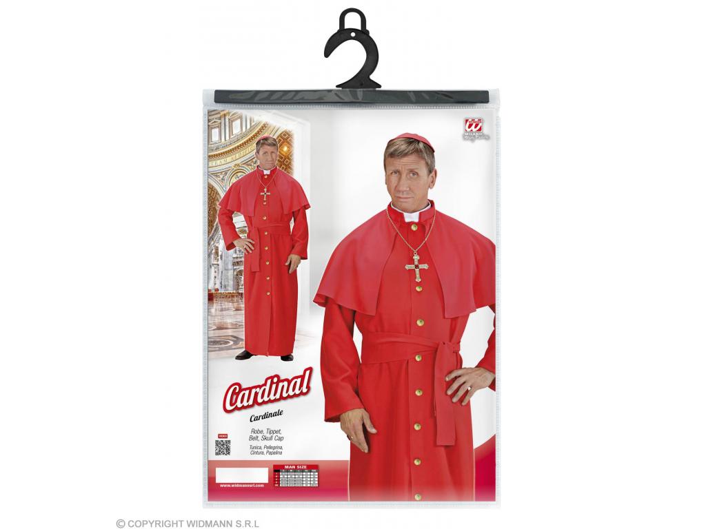 Felnőtt jelmez szett, részei: piros tunika, aranyszínű gombokkal, pelerinnel; deréköv, piros bíborosi fejfedő. 100% poliészter. Bíborosként vagy kardinálisként megjelenésünk biztosan méltóságteljes és tiszteletet ébresztő lesz a jelmezbálon.