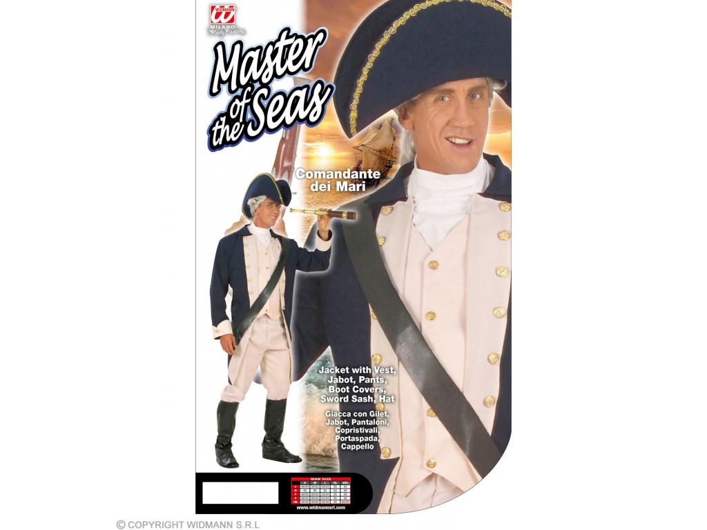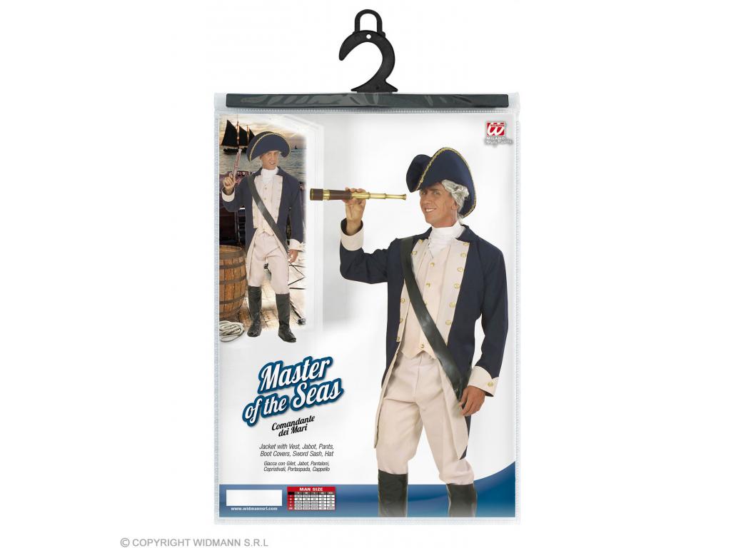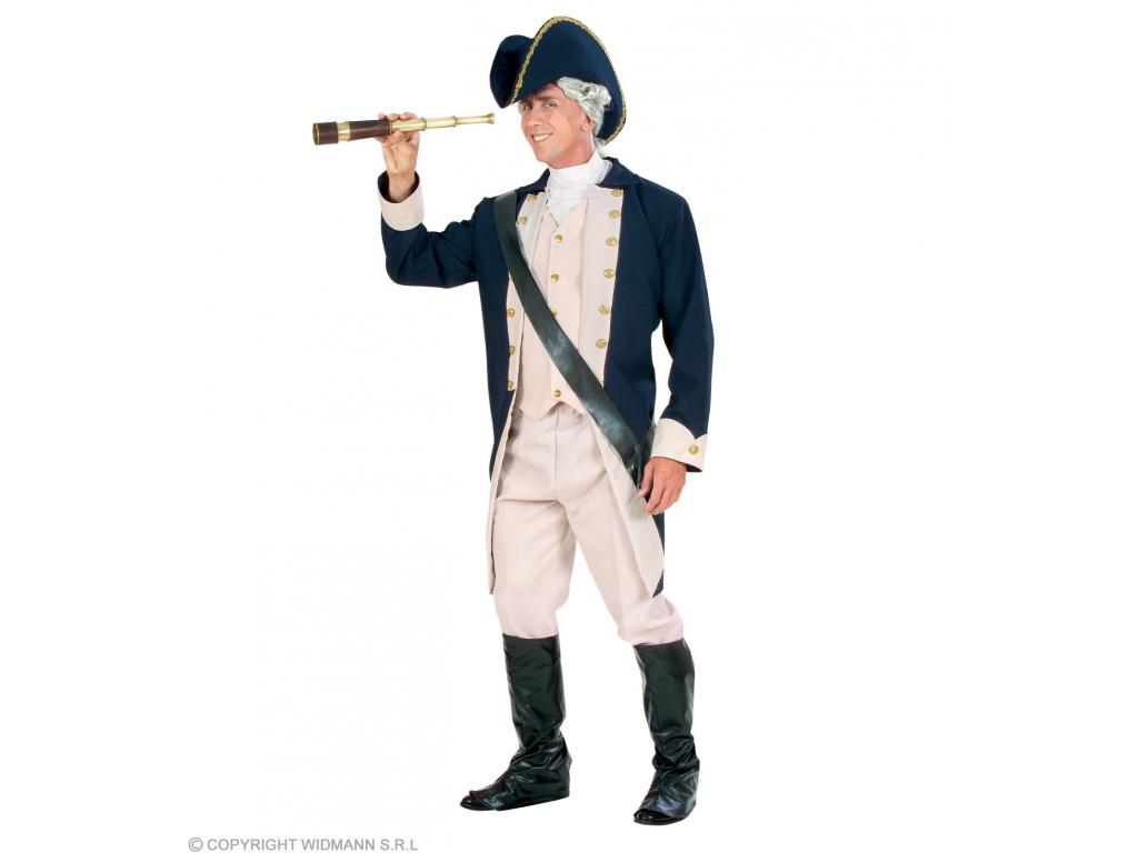 Felnőtt jelmez szett, részei: nadrág, cipőre/csizmára húzható felsőrész, kabát mellénnyel és zsabóval, fegyvertartó öv, kalap. Fegyvert, parókát nem tartalmaz. Keressünk hozzá megfelelő, korabeli parókát kiegészítőnek, hogy valóban gyarmatosítás korabeli hajóskapitányként vehessünk részt a jelmezbálban.