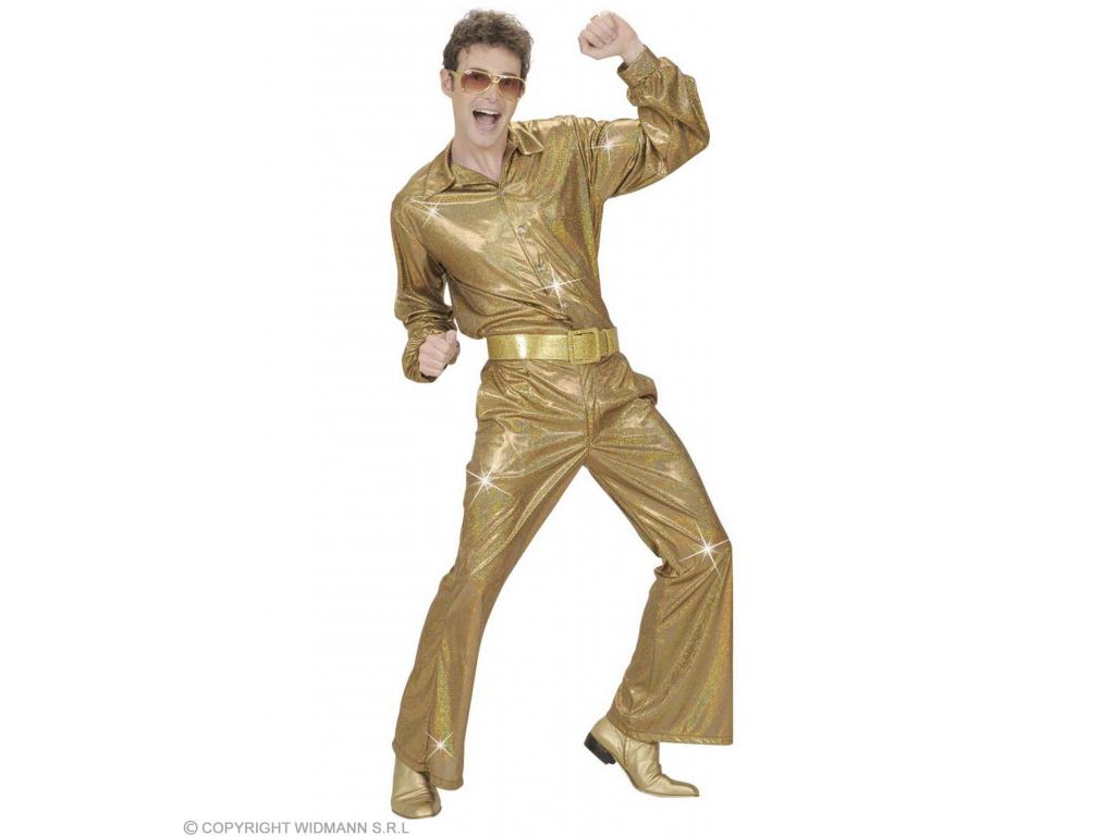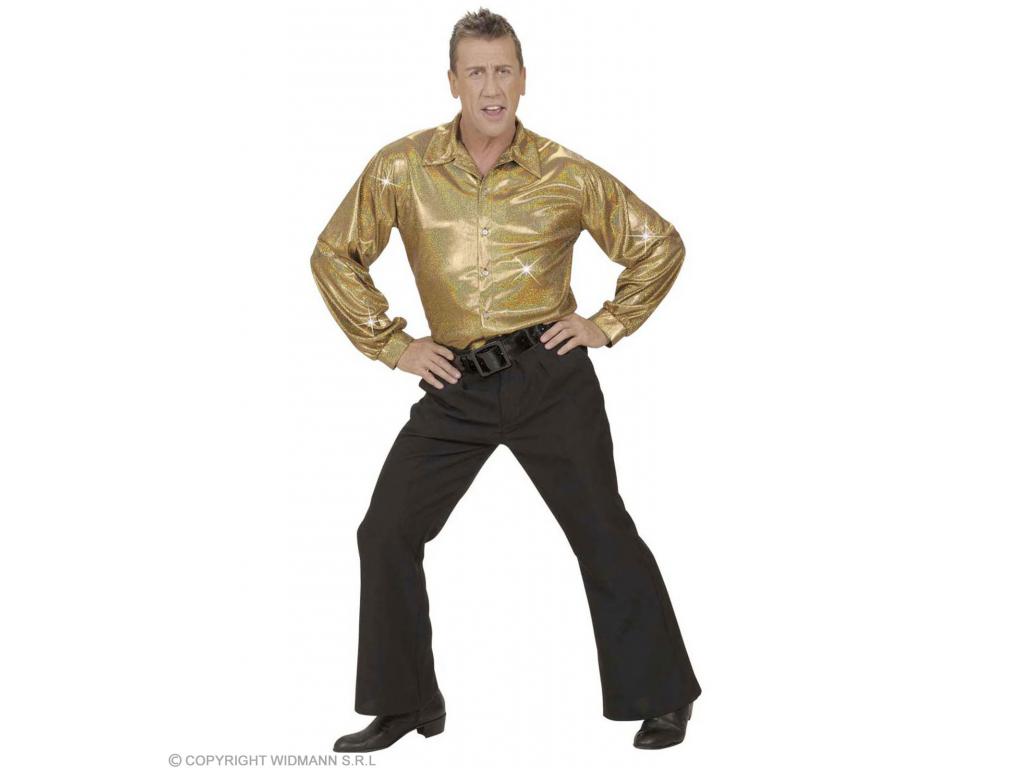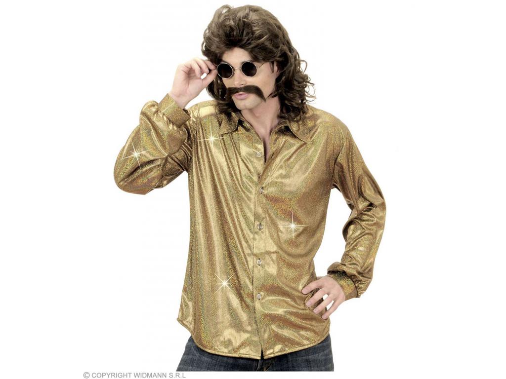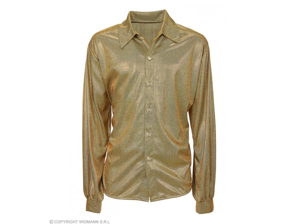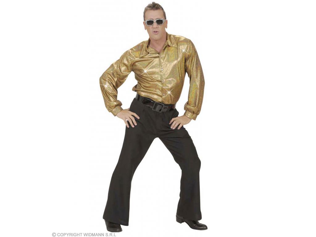 Felnőtt jelmezkiegészítő: aranyszínű, csillogó glitter hologramos anyagból készült ing. Retro hatású, csillámos-fényes ing, mellyel diszkó táncos, énekes, rock- vagy popsztár jelmezünket egészíthetjük ki. Csak jelmezkiegészítő, tehát nadrágot, parókát, szemüveget, stb. nem tartalmaz.
