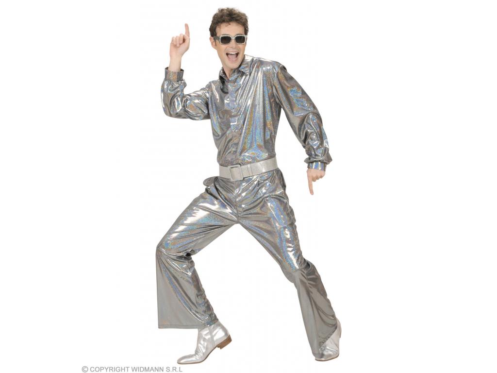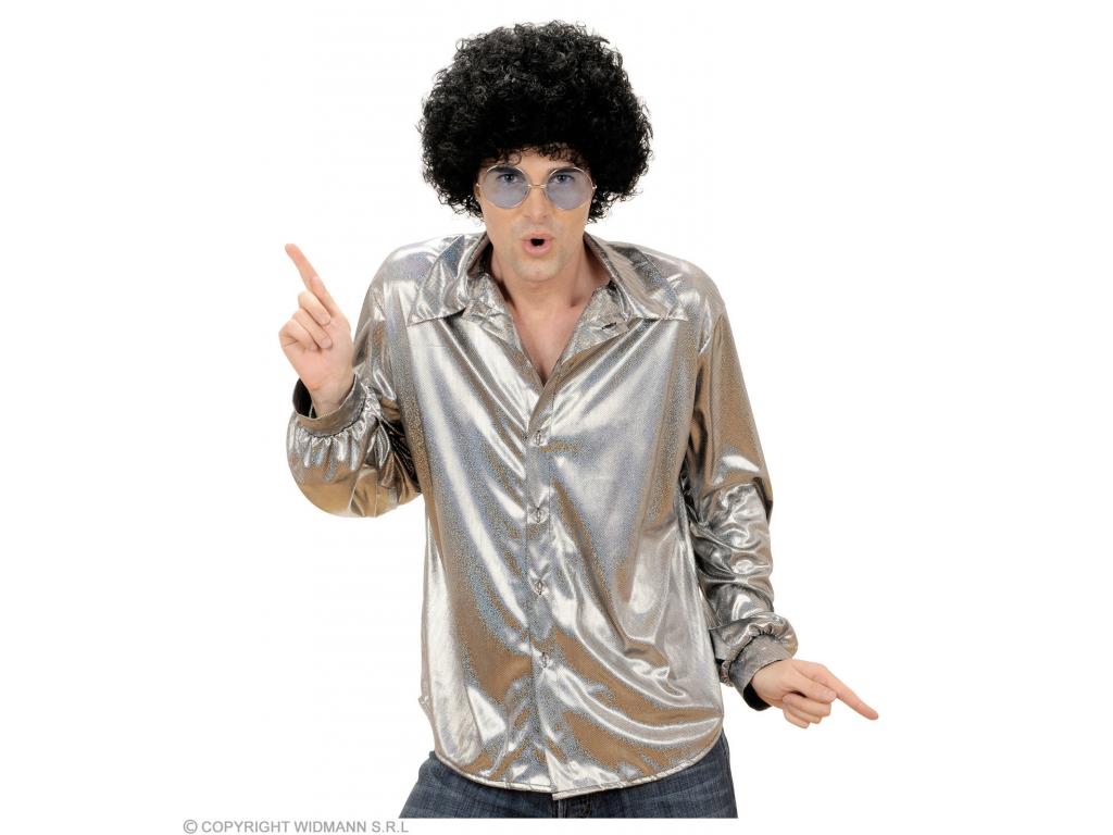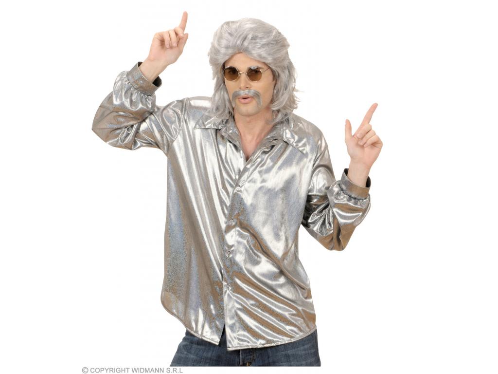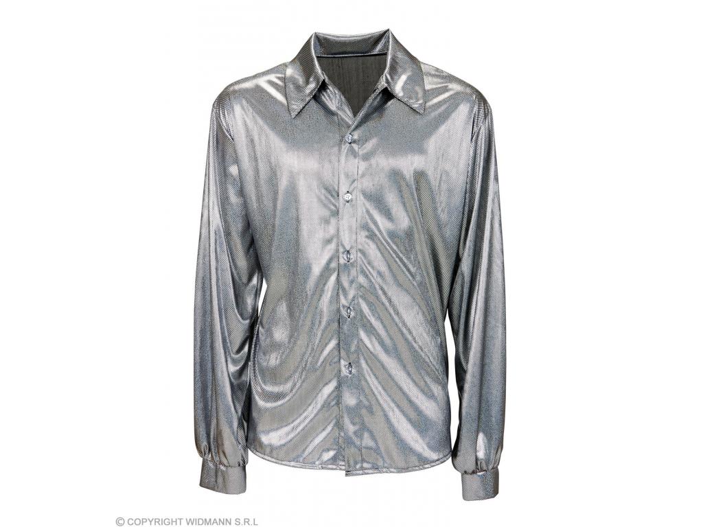 Felnőtt jelmezkiegészítő: ezüstszínű, csillogó glitter hologramos anyagból készült ing. Retro hatású, csillámos-fényes ing, mellyel diszkó táncos, énekes, rock- vagy popsztár jelmezünket egészíthetjük ki. Csak jelmezkiegészítő, tehát nadrágot, parókát, szemüveget, stb. nem tartalmaz.