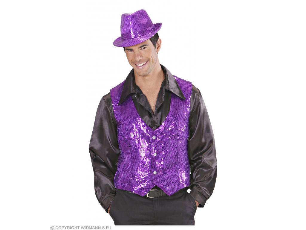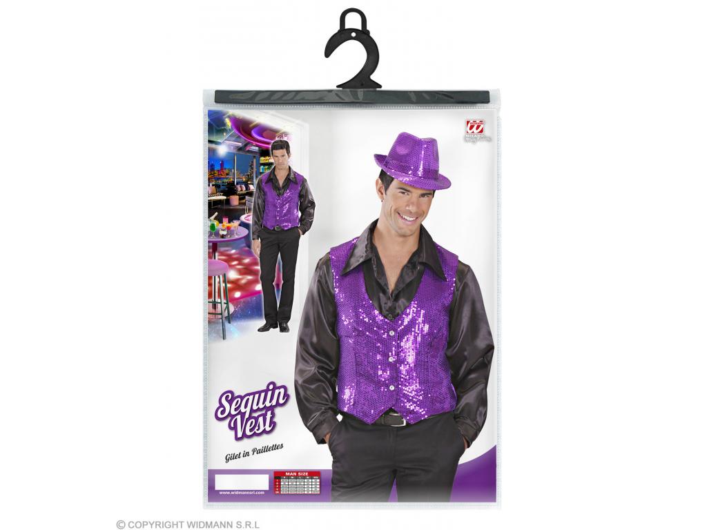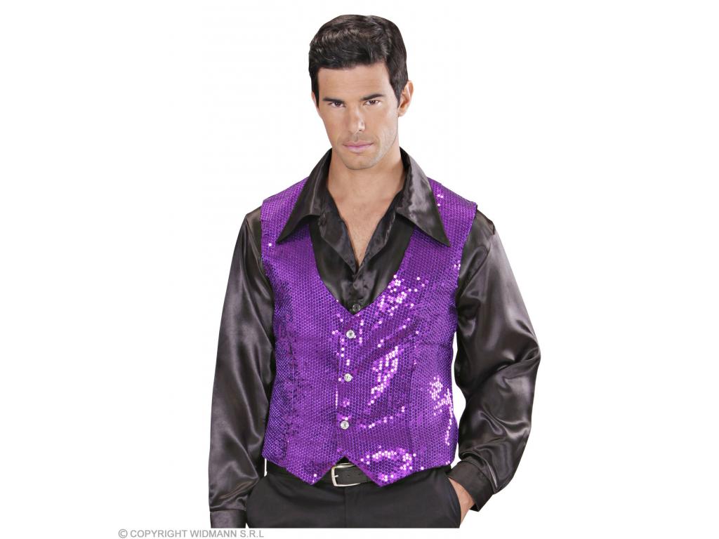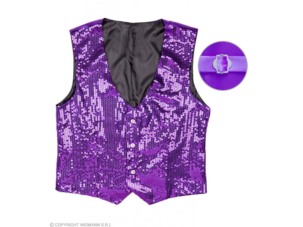 Felnőtt jelmezkiegészítő: flitteres csillogó mellény, lila színű. Elöl gombos, hátul szűkebbre vehető csattal. Az ár 1 darabra vonatkozik. Csak jelmezkiegészítő, mást nem tartalmaz. Retro hatású, csillogó flitteres mellény, vidám színekben, mellyel táncos, énekes, rock-vagy popsztár jelmezünket egészíthetjük ki.