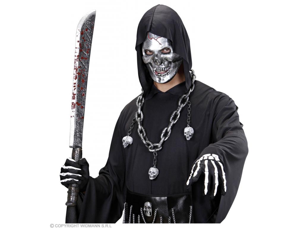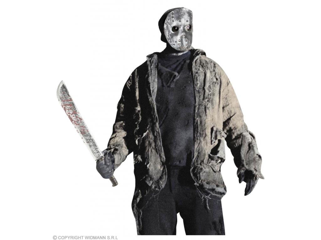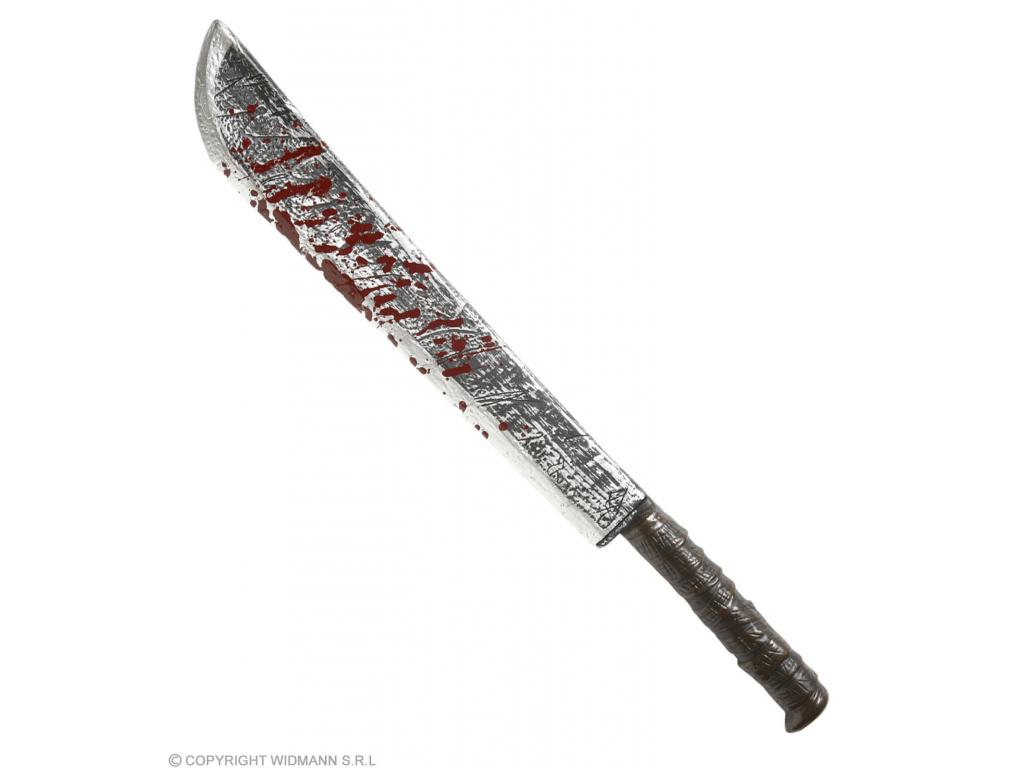 Kb. 75 cm-es véres machete kés jelmezkiegészítő dekorációs kellék. Gyilkos, zombi stb. jelmezekhez vagy halloween dekorációként.