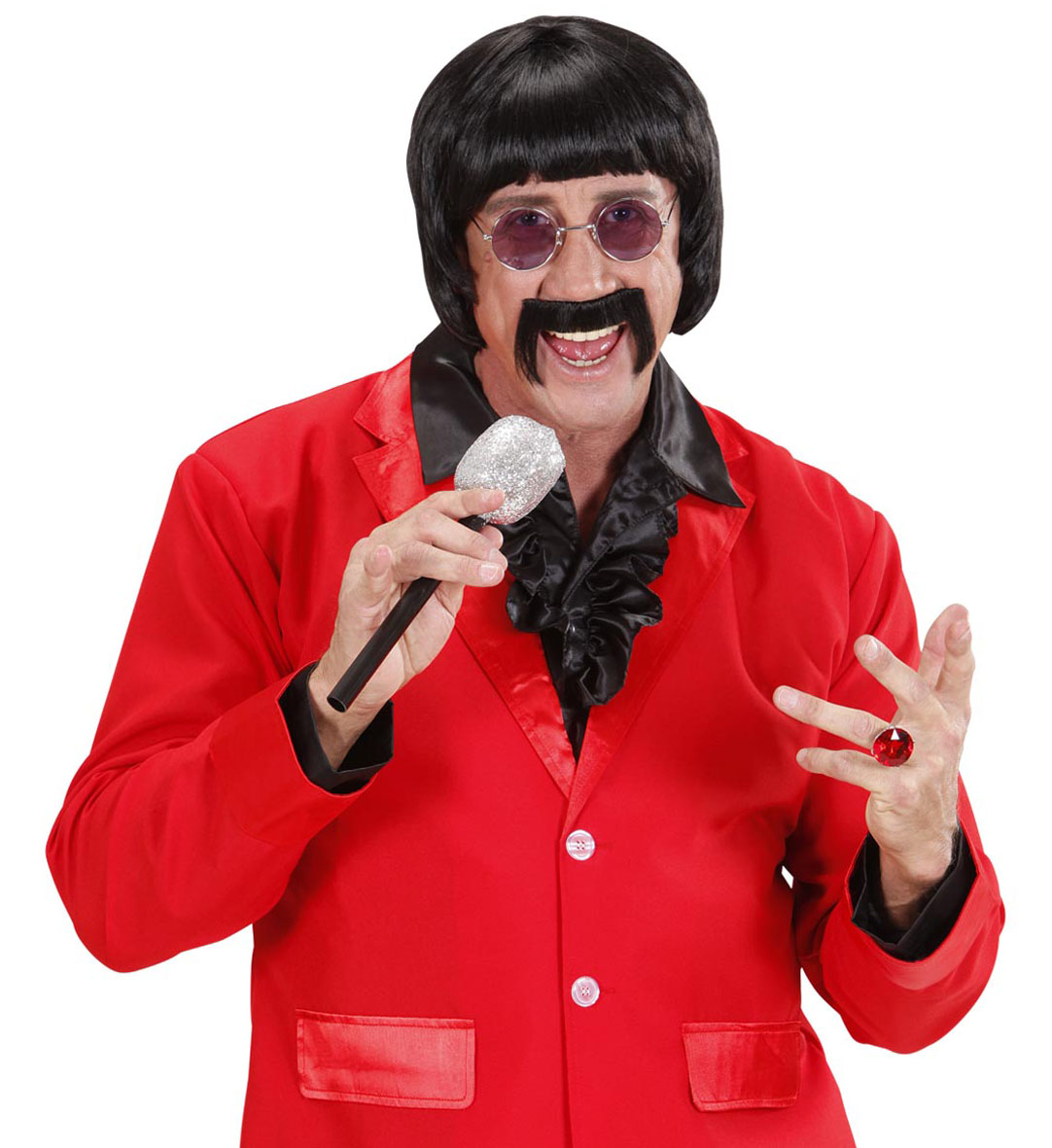 60-as évek énekese szett: fekete paróka, bajusz és szemüveg