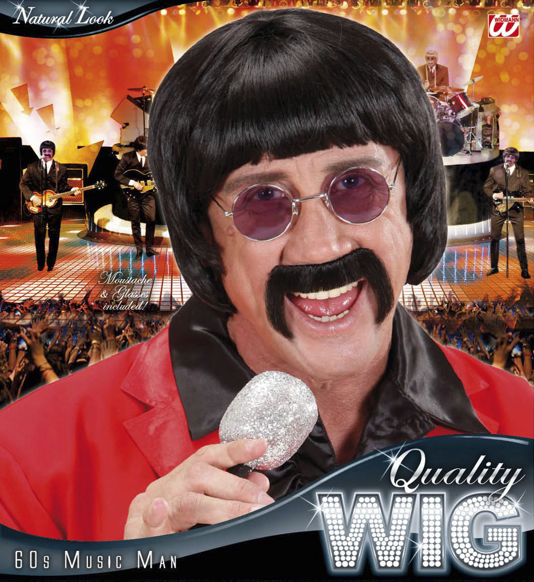Jelmezkiegészítő szett: rövid, fekete férfi paróka, fekete bajusz, szemüveg. Anyag: poliészter, műanyag. A szükséges ragasztót is tartalmazza. Egységes felnőtt méret. Dobozos csomagolás. Csak jelmezkiegészítő, tehát a képen látható többi kiegészítőt, illetve magát a jelmezt nem tartalmazza. Utazzon vissza az 1960-as évekbe, és élje át újra a Beat-korszakot! Az 1960-as évek énekesének öltözve biztosan sikert arat a jelmezbálon, nosztalgia-partikon.