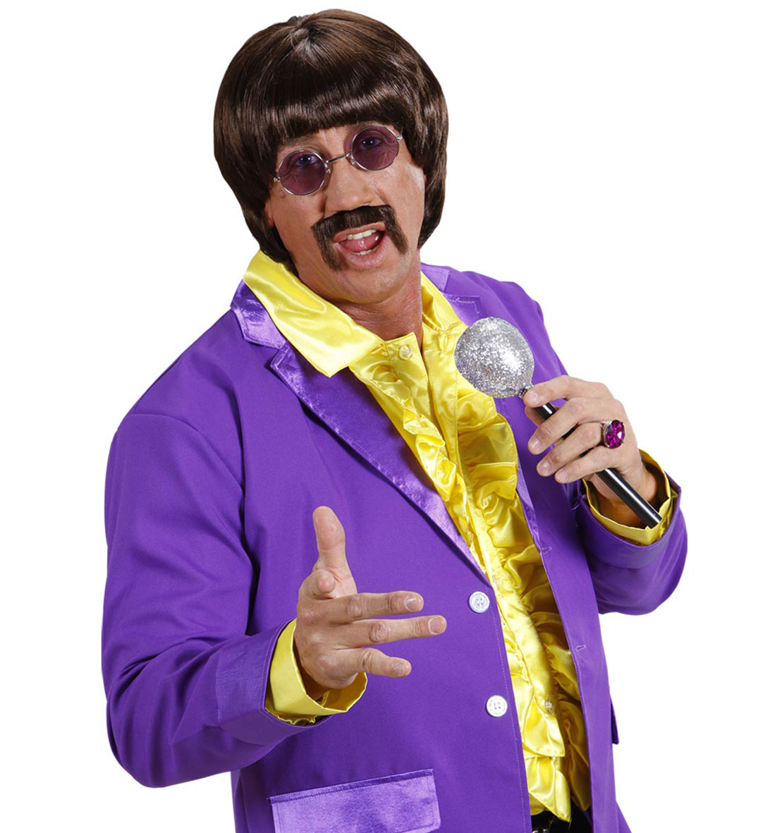 A 60-as évek énekese szett: barna paróka, bajusz és szemüveg leírása: