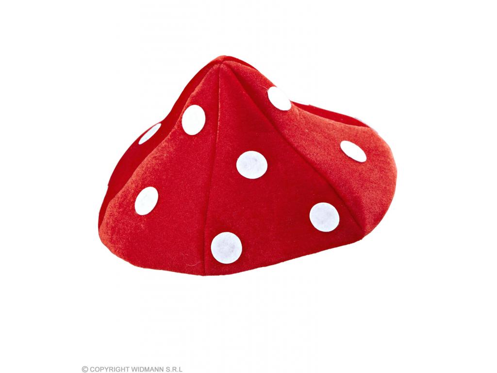 Gombafej formájú, piros kalap, fehér pöttyekkel. Bársony hatású külső (anyag: poliészter). Belül körben gumipánt tartja fixen a fejünkön. Enyhén kipárnázott. Méret: 54 - 58. Mókás gombasapka, mely vidám kiegészítője lehet többféle vicces farsangi, karneváli, szilveszteri jelmeznek, de önállóan is jól mutat bulikban, partikon viselve.