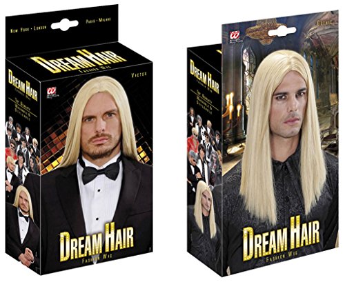 Férfi jelmezkiegészítő: szőke színű paróka, hosszú, egyenes, középen elválasztott hajjal. Egységes felnőtt méret. Csak jelmezkiegészítő, tehát a képen látható jelmezt, és többi kiegészítőt nem tartalmazza. Dobozos csomagolásban. Elegáns, ápolt hosszú hajú férfi paróka, mely többféle jelmez kiváló kiegészítője lehet. Jelmezt, és kiegészítőket válasszon áruházunk széles jelmez-és kosztümválasztékából.