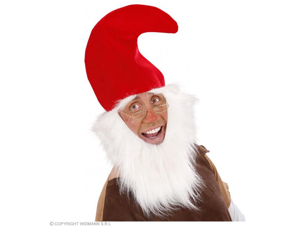 Manó jelmezkiegészítő szett: piros filc manósapka, fehér szemöldök + fehér szakáll. Manó, vagy törpe jelmez tökéletes, klasszikus kiegészítője