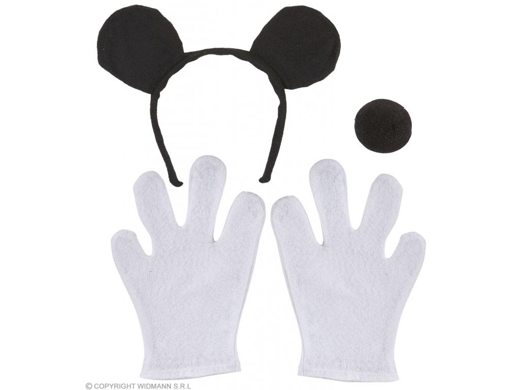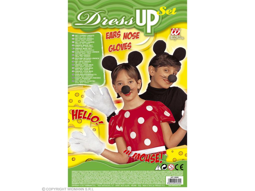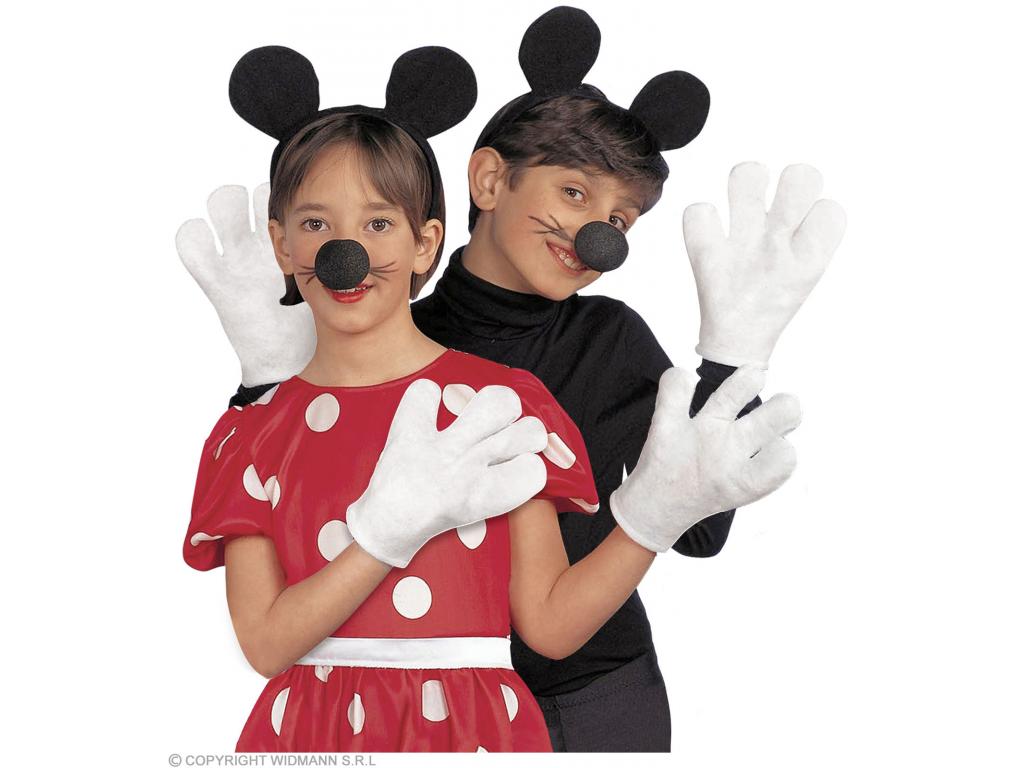 Gyermek jelmezkiegészítő szett: hajpántra rögzített fekete egérfülek, fekete orr, 1 pár fehér kesztyű. Fiúknak és lányoknak is ajánlott egér jelmezkiegészítő szett, mely magát a ruhát, jelmezt nem tartalmazza.