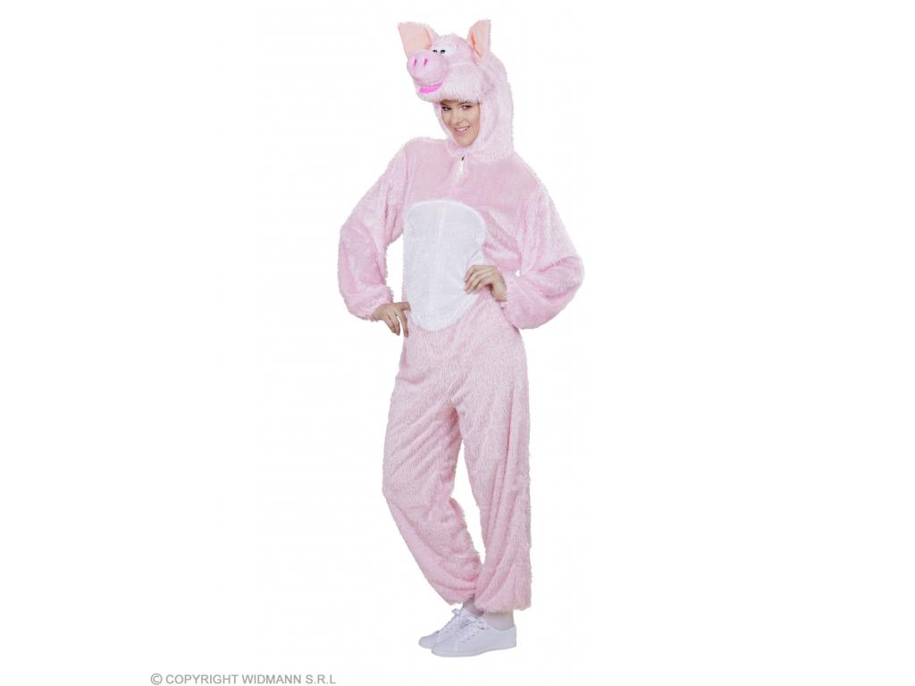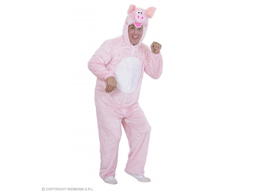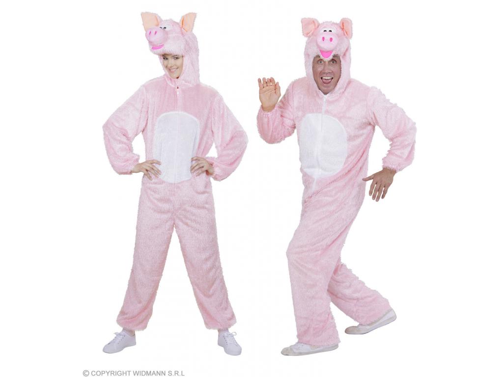 Malac: egyrészes plüss overall kezeslábas felnőtt jelmez, kapucnis maszkkal, mely az arcot szabadon hagyja. Rózsaszín-fehér overál, malac fejdísszel. Aranyos, egyszerűen használható kezeslábas állatjelmez. Plüss anyagának köszönhetően a hideg farsangi időben is kényelmes a viselete.