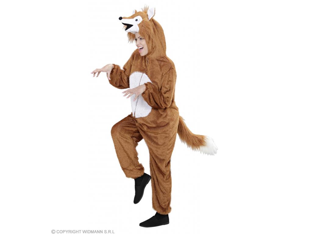 Róka: egyrészes plüss overall kezeslábas felnott jelmez, kapucnis maszkkal, mely az arcot szabadon hagyja. Barna színu, fehér pocakrésszel. Rókafej fejdísszel, fülekkel, farokkal. Aranyos, egyszeruen használható kezeslábas állatjelmez. Plüss anyagának köszönhetoen a hideg farsangi idoben is kényelmes a viselete.