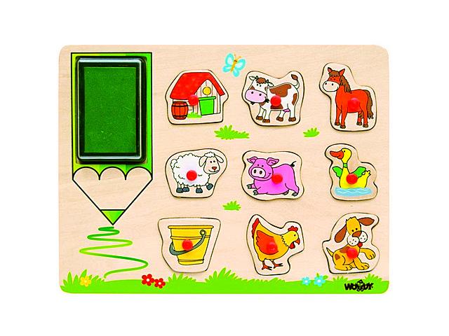 Nem csak a különböző formákkal és farm állatokkal ismerkedhetnek meg a kicsik a játék során, de a nyomdáknak köszönhetően a rajzaikat is izgalmasabbá tehetik. A legkisebbek malacot, lovacskát vagy bárányt is nyomdázhatnak a formákkal, hiszen a készlet része a tintapárna, melyre csak rá kell helyezniük a fa állatformát, aminek alján gumi minta található. A papírra nyomva máris látható lesz a színezhető állatfigura!
