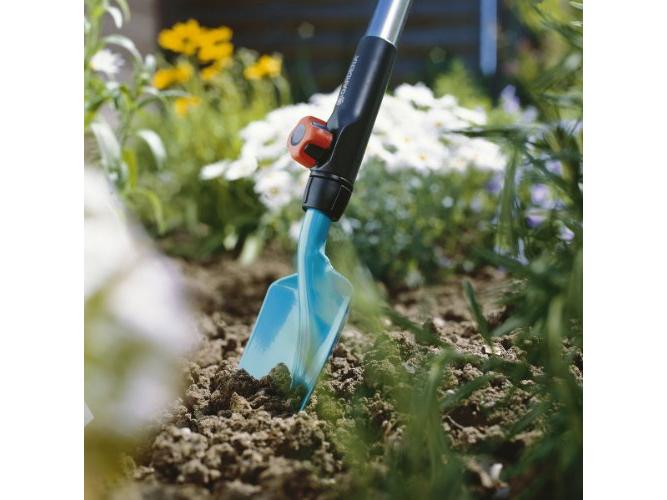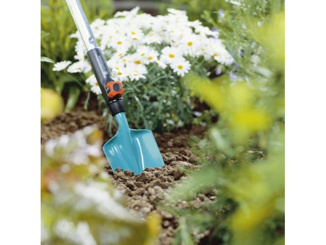 A 8,5 cm munkaszélességu GARDENA combisystem viráglapát ideális eszköz az ültetési és átültetési munkákhoz az ágyásokban, virágládákban és virágcserepekben. A speciális kialakítású, jól kézbe illo markolat megkönnyíti a munkát. Praktikus: a nyél könnyen eltávolítható, és bármilyen combisystem nyéllel helyettesítheto - a kényelmes, görnyedés nélküli munka érdekében. A nemesacél viráglapát hore keményedo muanyagból készülo bevonattal rendelkezik.
