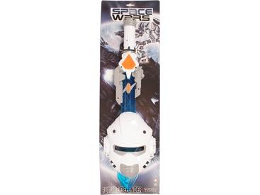 Szállj csatába a Space Wars űrmaszk és fénykard készlettel! A fénykard futurisztikus és vagány megjelenésű, gombnyomásra a kék pengéje világít, miközben a fegyver félelmetes hangokat ad ki magából. A Space Wars űrmaszk és fénykard készlet egy fehér álarcot is tartalmaz, amit az arcodra húzva még félelmetesebb ellenfélnek fogsz bizonyulni. Az űrmaszk univerzális méretű, kicsik és nagyok egyaránt viselhetik. A kard 3 db AA ceruzaelemmel működik, a csomagolás az elemeket tartalmazza. Álarc méretei: 18 x 23 x 5 cm. Kard méretei: 62 x 10 x 5 cm.