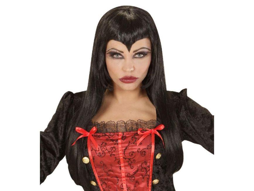 Felnőtt, női jelmezkiegészítő: hosszú fekete hajú paróka, csúcsosra fésült frufruval, különösen vámpír, gothic vagy más halloween női jelmezekhez ajánlott. Egységes felnőtt méret. A termék csak jelmezkiegészítő kellék, tehát a képeken látható további kiegészítőket, jelmezt magát nem tartalmazza.