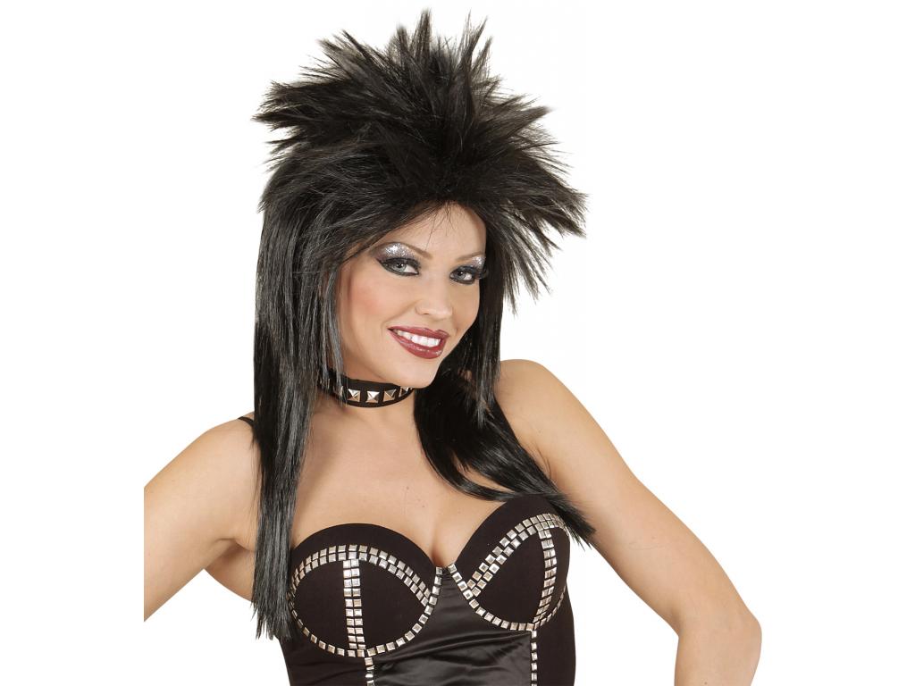 Felnőtt, női jelmezkiegészítő: fekete hajú paróka, mely különösen a 80-as, 90-es évek női pop/rock sztár jelmezeihez ajánlott. Egységes felnőtt méret. A termék csak jelmezkiegészítő kellék, tehát a képeken látható további kiegészítőket, jelmezt magát nem tartalmazza.