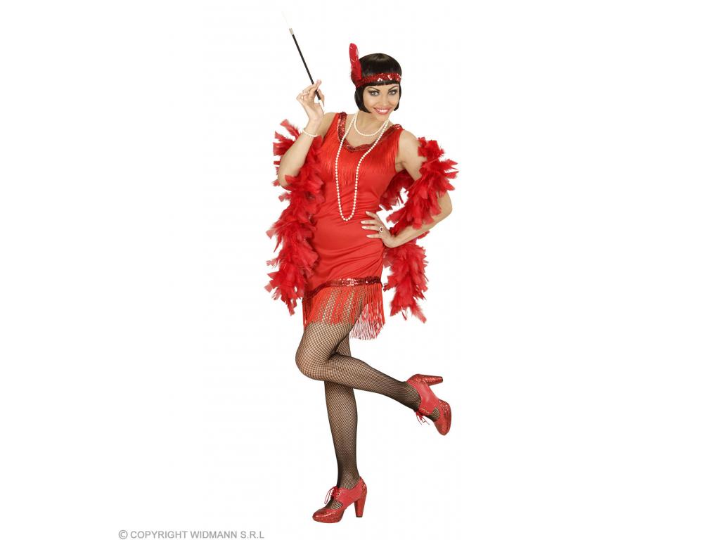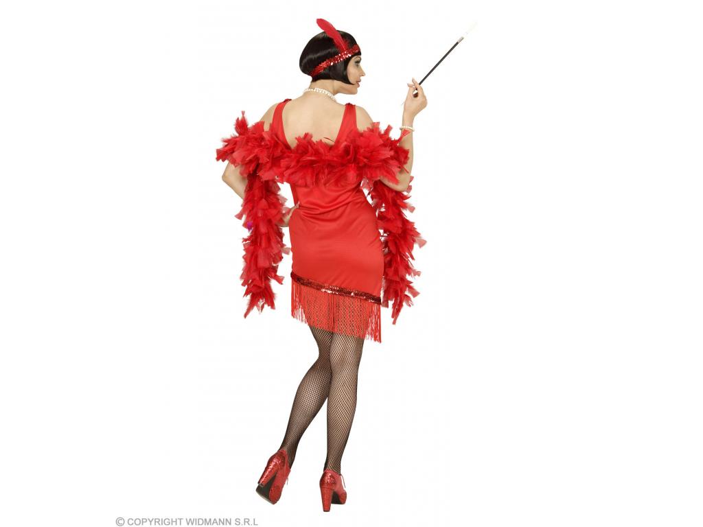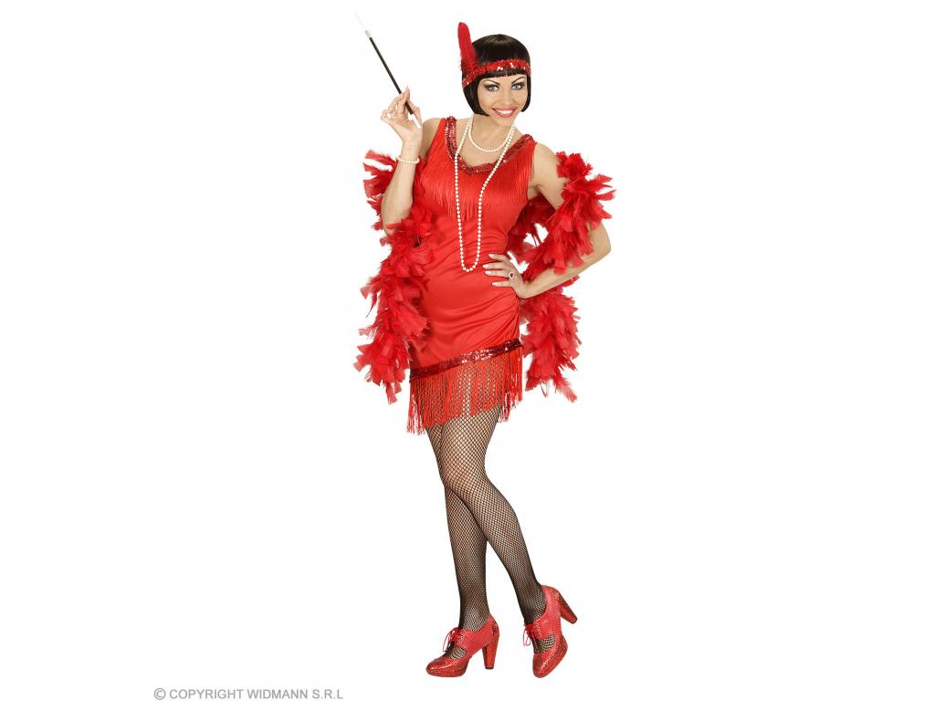Felnőtt, női jelmez szett, részei: piros színű ujjatlan miniruha piros színű rojtos szegéllyel, valamint egy piros fejpánt, tolldísszel. A képen látható egyéb kiegészítők, mint cipő, harisnya, boa, vagy paróka nem részei a terméknek. Idézd fel az 1920-as évek legendás Charleston-korszakát, és a chicago-i mulatók hangulatát - ezzel a szexi ruhával bármelyik tematikus jelmezes bulin vagy karneválon sikeres leszel. További kiegészítőket, pl. harisnya, vagy Charleston-paróka, keresd áruházunkban!