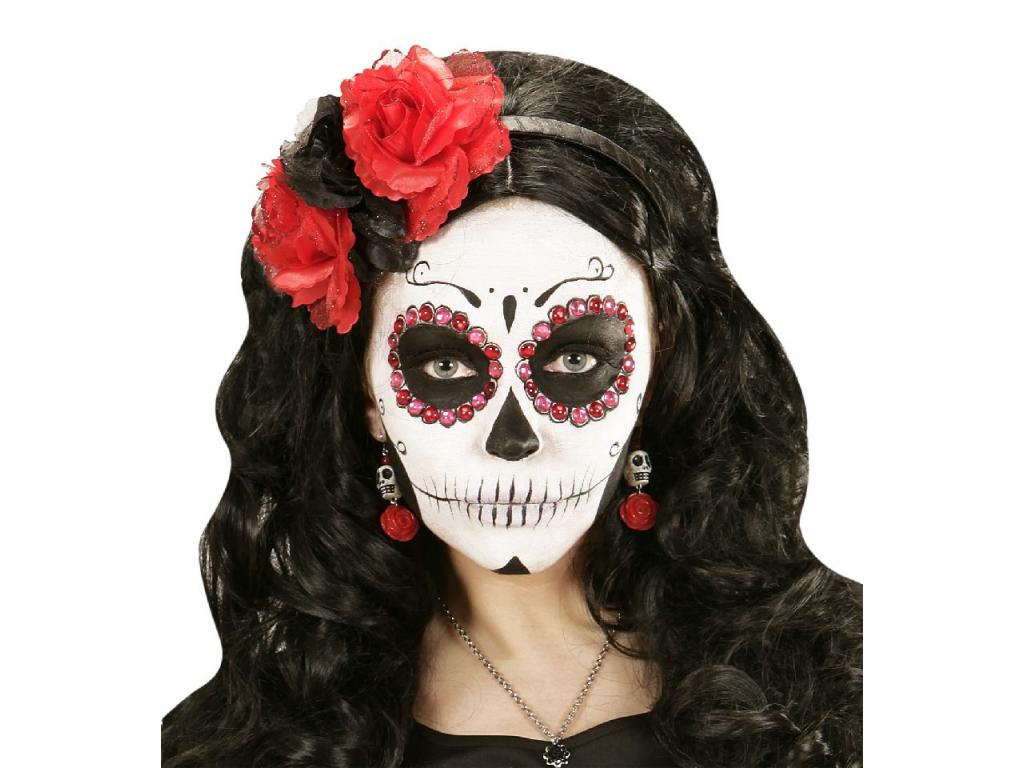 Felnőtt jelmezkiegészítő: 1 pár fülbevaló. - motívum: fehér koponya, vörös rózsa - méret: 5 cm - anyag: műanyag Csak jelmezkiegészítő/kellék, tehát a képeken látható többi jelmezt, kiegészítőt a termék nem tartalmazza!