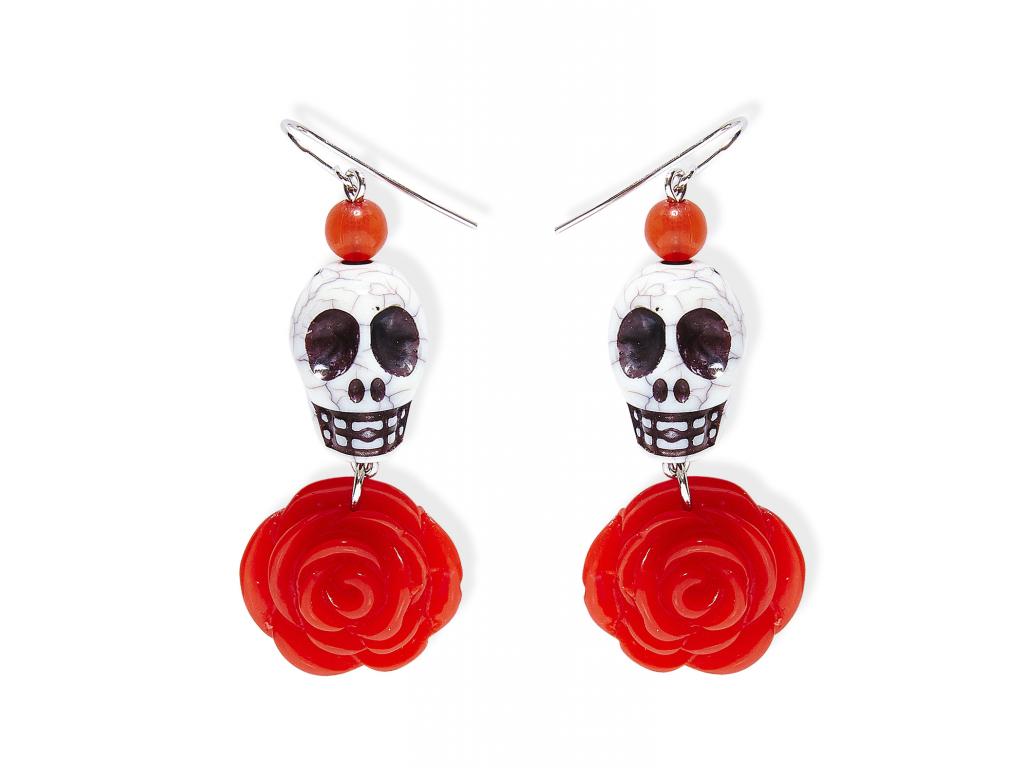 Koponyás fülbevaló vörös rózsával