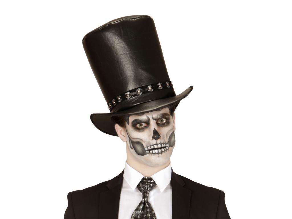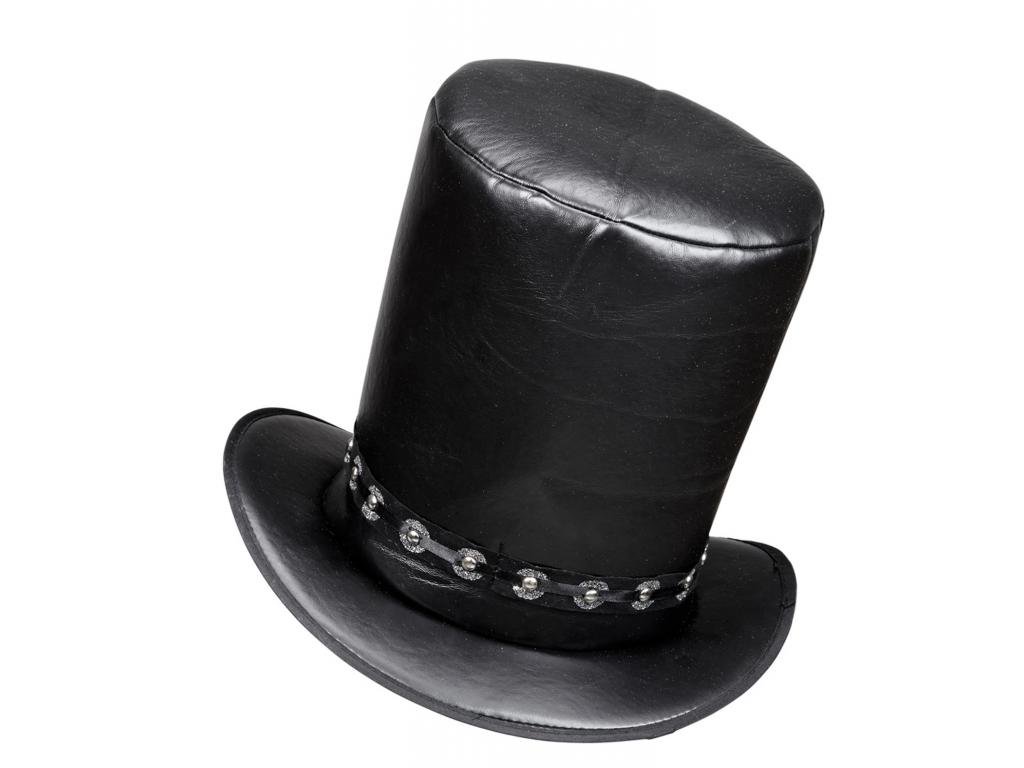 Felnőtt jelmezkiegészítő: fekete színű, bőr jellegű, magas cilinderkalap, szegecsekkel díszítve. Egységes felnőtt méret. A termék csak jelmezkiegészítő kellék, tehát a képeken látható további jelmezeket, egyéb kiegészítőket kellékeket nem tartalmazza!