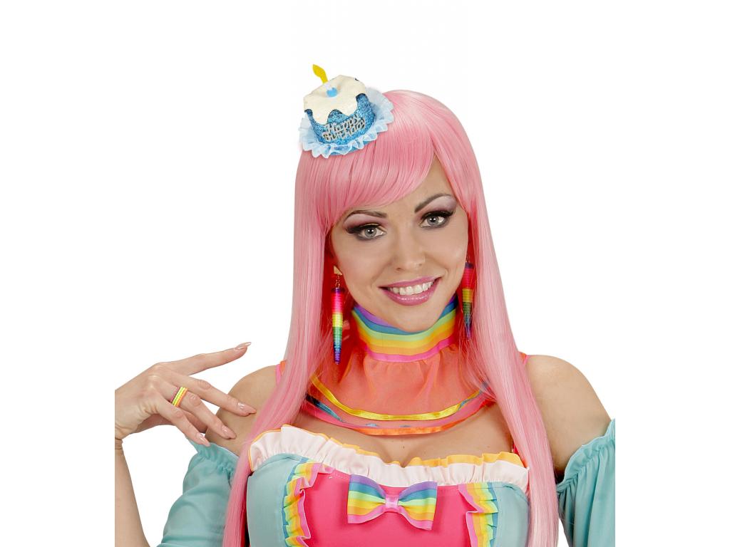 A Happy Birthday - hajcsipeszre rögzített színes mini torta kalap, többféle, 1 db leírása: