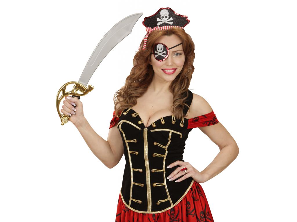 Felnőtt női jelmezkiegészítő szett: Hajráfra rögzített mini kalózsapka, és egy kalóz szemfedő. Egységes felnőtt méret. A termék csak jelmezkiegészítő kellék, tehát a képeken látható további jelmezeket, egyéb kiegészítőket kellékeket nem tartalmazza!