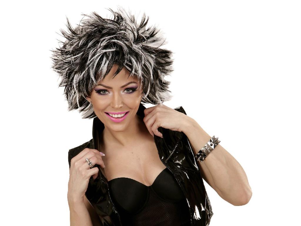 Felnőtt női jelmezkiegészítő: rövid, dús hajú paróka, mely kétféle szín kombinációjával hívja fel magára a figyelmet: fekete és fehér. Többféle női jelmez, vagy party öltözetünk egyedi stílusú kiegészítője lehet. Egységes felnőtt méret. A termék csak jelmezkiegészítő kellék, tehát a képeken látható további kiegészítőket, jelmezt magát nem tartalmazza.