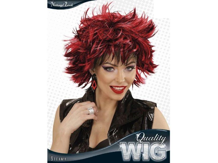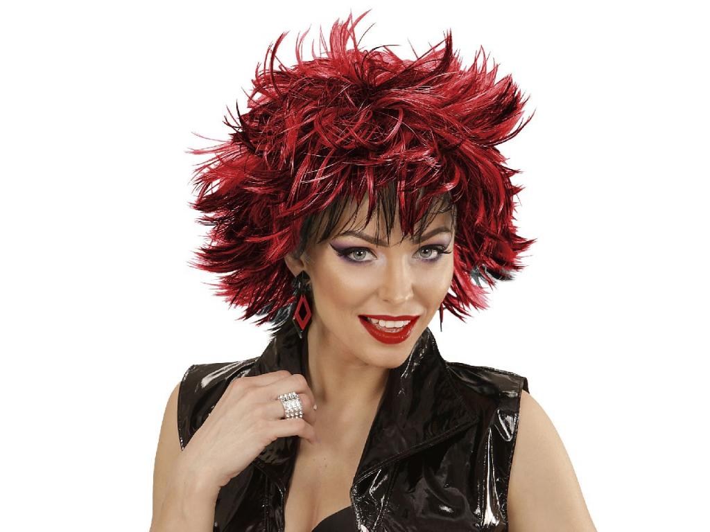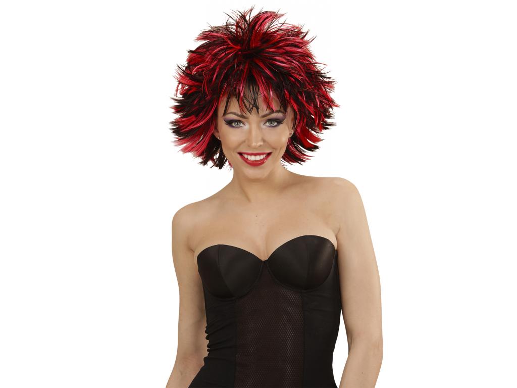 Felnőtt női jelmezkiegészítő: rövid, dús hajú paróka, mely kétféle szín kombinációjával hívja fel magára a figyelmet: fekete és piros. Többféle női jelmez, vagy party öltözetünk egyedi stílusú kiegészítője lehet. Egységes felnőtt méret. A termék csak jelmezkiegészítő kellék, tehát a képeken látható további kiegészítőket, jelmezt magát nem tartalmazza.