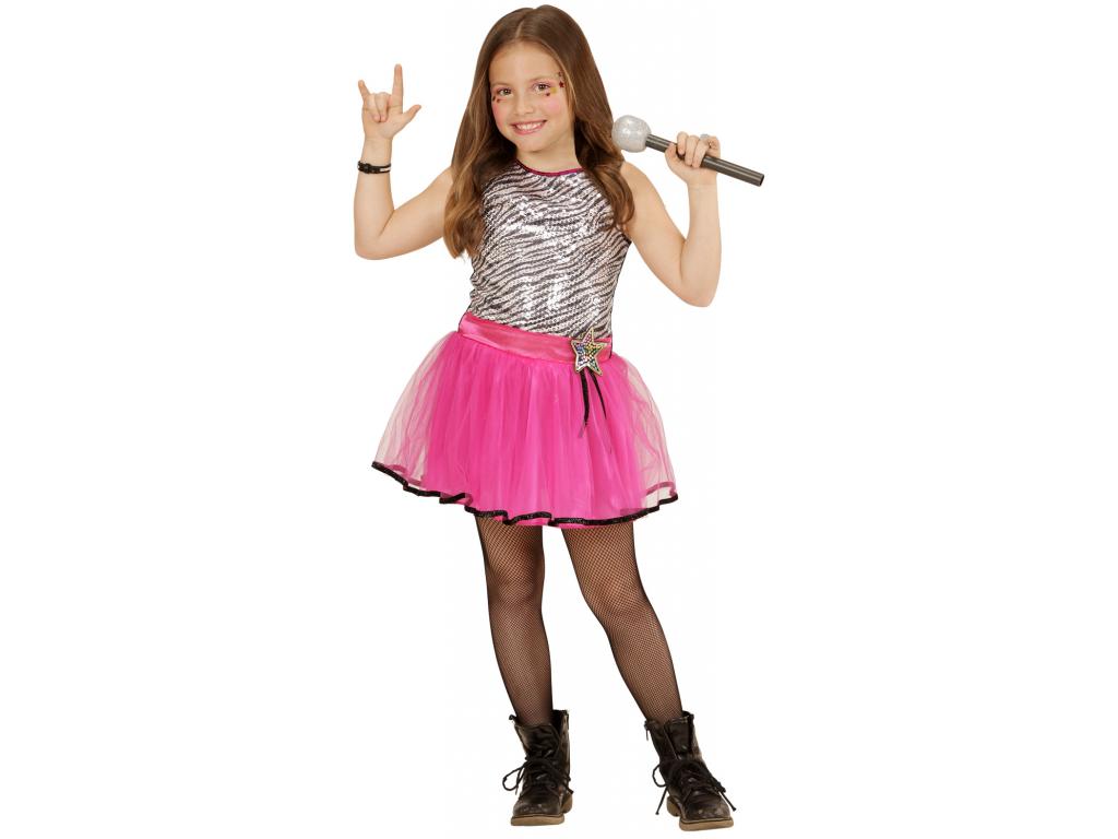 Gyermek jelmez: ruha rózsaszín szoknyával és tüll felső szoknyával, valamint ujjatlan, fekete-fehér mintás, csillogó felsőrésszel. A szoknyát derékrészen egy csillag is díszíti. Harisnya, illetve mikrofon nem részei a szettnek. A tehetségkutató műsorokat nézve arról álmodozol, hogy meghódítsd hangoddal a közönséget? Ez a ruha - a jelmezbál idejére - ünnepelt popsztárrá változtathat téged!