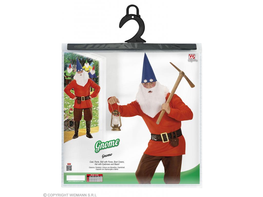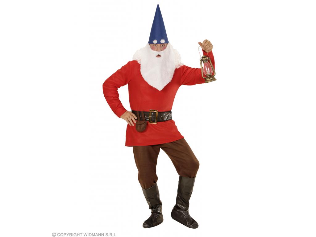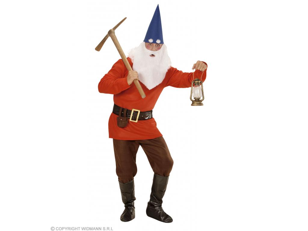 Felnőtt jelmez szett. Részei: barna nadrág, a cipőre/csizmára ráhúzható kamásli kiegészítő, piros felsőrész, fekete öv csattal és zsebbel, kék sapka hosszú fehér körszakállal és szemöldökökkel. A csákány és lámpás nem tartozék. A hét törpe egyike, vagy más mesefigura lehetsz a jelmezbálban ezzel a komplett jelmezszettel.