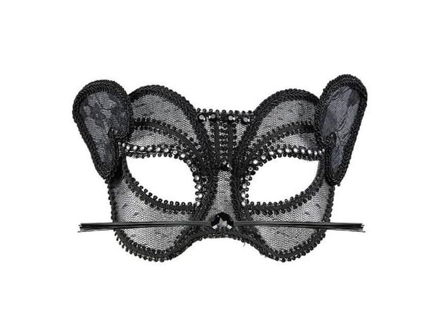 Különleges megjelenésű szemmaszk, mely garantáltan magára vonja a figyelmet farsang, karnevál és más jelmezes rendezvény idején. Fekete szegélyű, átlátszó csipke-anyagú, nagy méretű macska-szemmaszk, strassz kövekkel és macskabajusszal díszítve. Egységes felnőtt méret. Az ár csak a szemmaszkra vonatkozik, a képeken látható egyéb ruhadarabok, jelmezek és kiegészítők nem részei a terméknek.