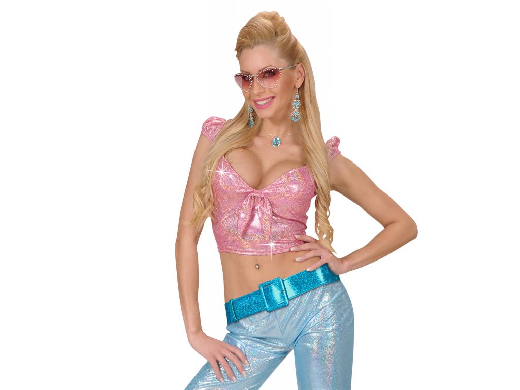 Felnőtt, női jelmezkiegészítő: csillámló felületű, türkizkék színű, széles nadrágszíj, mellyel többféle női jelmezt, pl. diszkó, táncos, illetve flitteres ruhákat egészíthetünk ki. Hossza: 120 cm. A termék további színváltozatait keresse áruházunkban. Az ár csak az övre vonatkozik, a többi, képen látható ruhadarab és kiegészítő nem részei a terméknek.