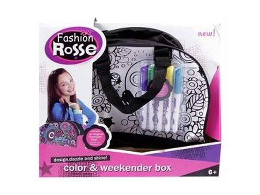 Színezd meg saját, egyedi mintájú táskád! A Fashion Rosse kifesthető kézitáska egy fekete-fehér, előre nyomtatott szatyor, amit kedvedre ki tudsz színezni filctollakkal. A táska cipzárral zárható, ha meguntad a mintát, csak ki kell mosni, és már kezdheted is elölről a dekorálást! A Fashion Rosse kifesthető kézitáska készlet a filctollakat is tartalmazza. Méretek: 30 x 10 x 20 cm.