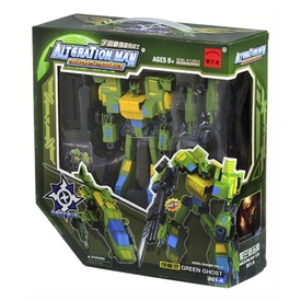 Alakítsd át a helikopter robottá, vagy autóvá! Az Alteration Man Green Ghost helikopter egy műanyagból készült 3 az 1-ben űrharcos, akiből egy félelemetes robotot, vagy egy gyors autót is össze tudsz rakni! A robot kezeibe fegyvert tudsz adni, a helikoptert egy állványra is fel tudod tenni. Az Alteration Man Green Ghost helikoptert könnyű átalakítani, kis gyakorlással pillanatok alatt átváltoztathatod! A robot mérete: 23 cm.
