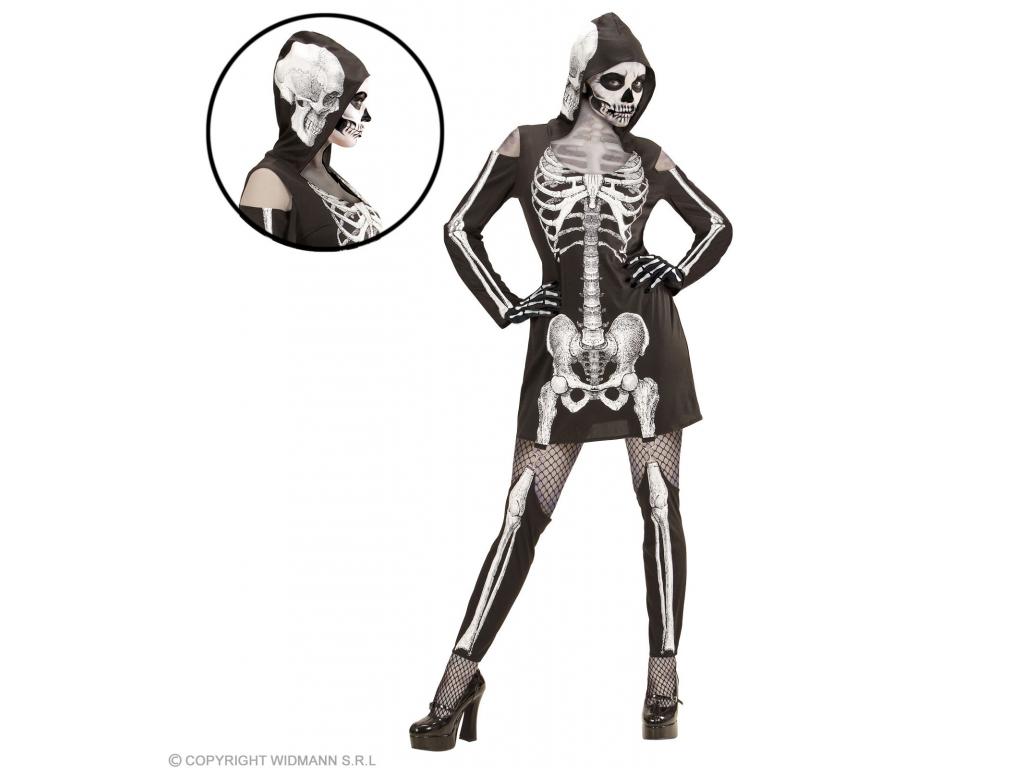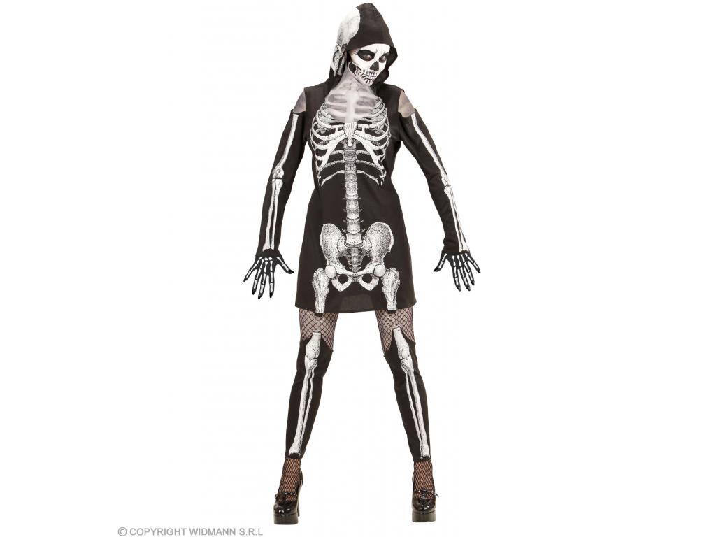 A jelmez tartozéka ruha kapucnival és harisnyás leggings Légy a bulik kedvenc csontváz hölgye! Légy ijesztő és megbabonázó egyszerre! A jelmez tartozéka a ruha és a harisnyás leggings. Vigyél egy kis horrort a partira!