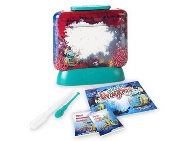Keltesd ki saját kis élőlényeid egy vízalatti világban! Az Aqua Dragons vízalatti világ díszdobozban készlet egy akváriumot rejt magában, amibe kicsi lényeket tudsz kikeltetni. Az Aqua Dragons vízisárkányok sórák néven is ismertek, sós vizekben, tengerekben és óceánokban élnek. Ezek a kis rákok már a dinoszauruszok korában is léteztek, és ezalatt megőrizték eredeti formájukat, megjelenésüket és felépítésüket is. Az Aqua Dragons vízalatti világ díszdobozban készletben megtalálod a kis élőlényeket, az élőhelyet, vagyis az akváriumot, illetve még egy eszközt is, amivel bele tudod helyezni a tojásokat a vízbe. Ideális esetben a kis Aqua Dragons sórákok akár 2 cm-esre is megnőhetnek! Az Aqua Dragons vízalatti világ díszdobozban készlet felelősségre nevel, megtanítja, hogyan kell gondoskodni élőlényekről. Csomagolás méretei: 15 x 4 x 15 cm.